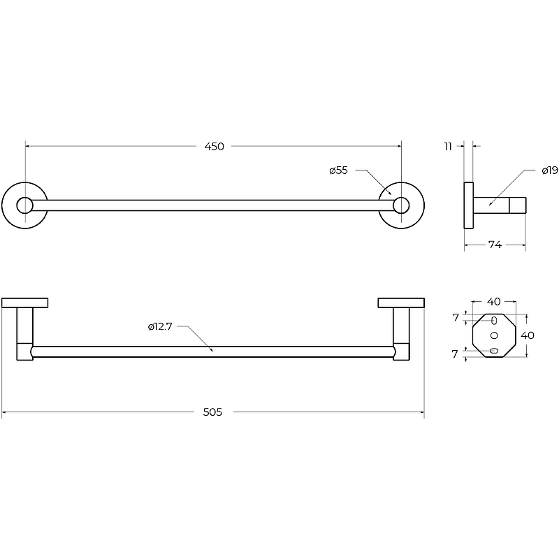 - Размеры (ШхВхГ): 505х55х74 мм.