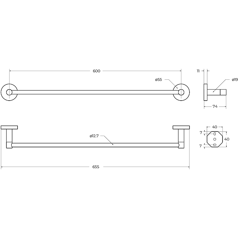 - Размеры (ШхВхГ): 655х55х74 мм.