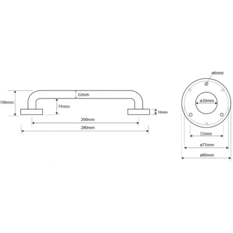 - Поручень прямой 200 мм, белый с крышками