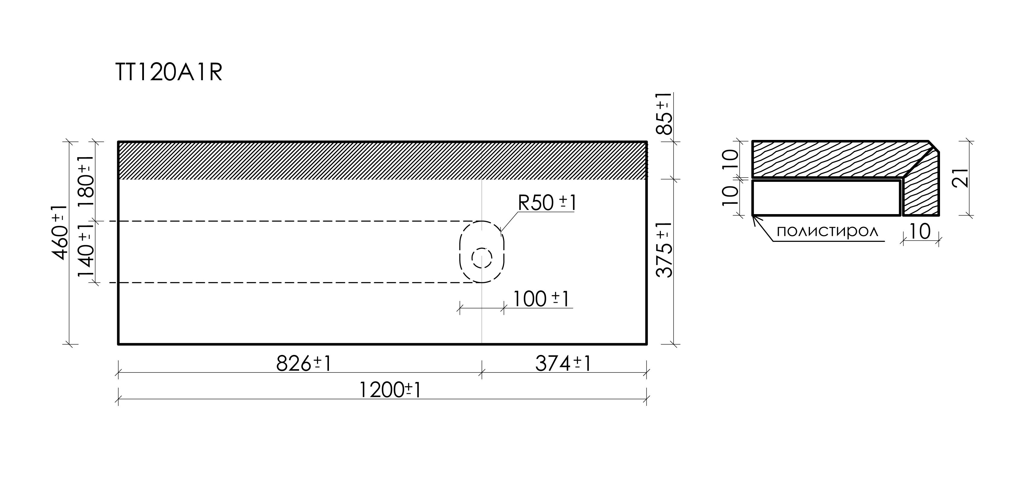 Столешница без просверленного отверстия под смеситель.