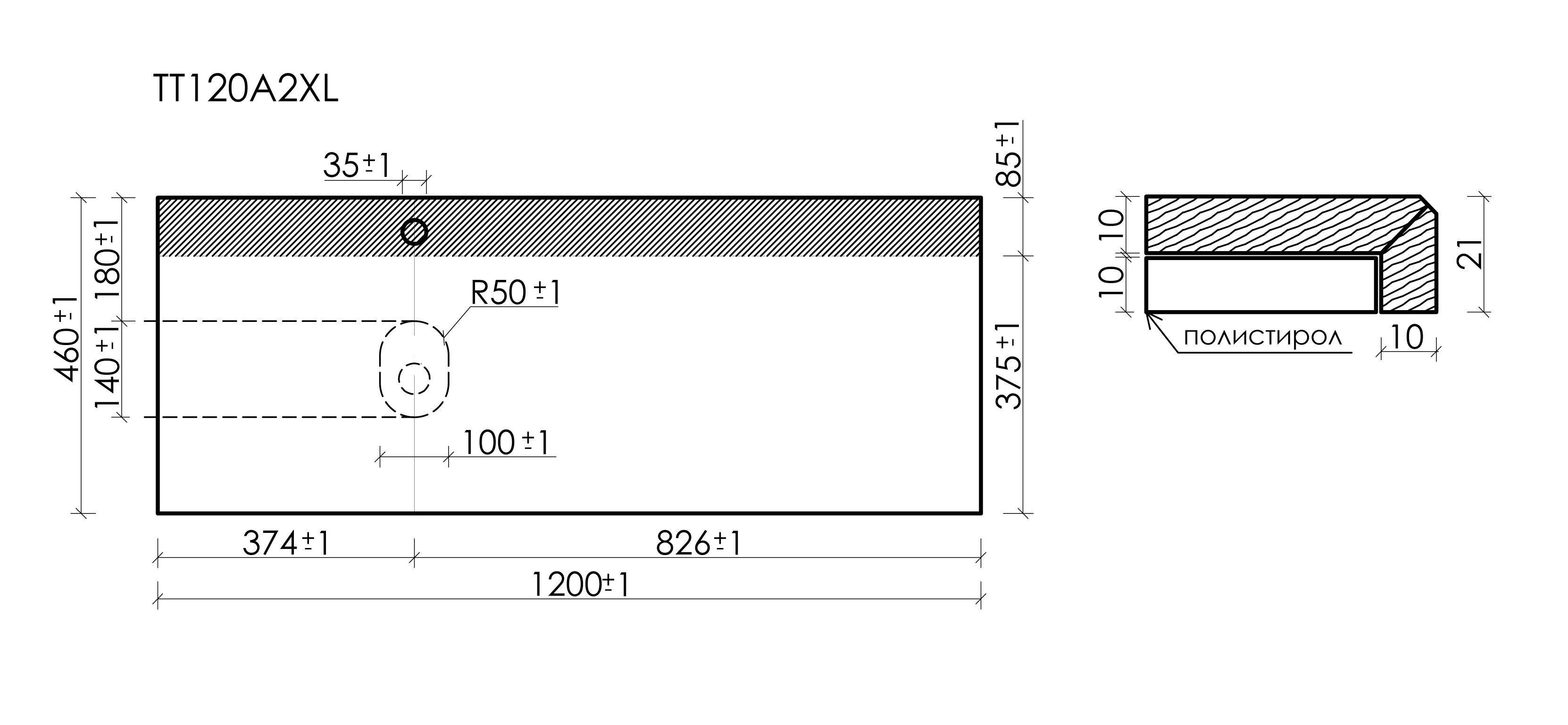 Рекомендуемая максимальная глубина накладной раковины при установке на столешницу - 360 мм