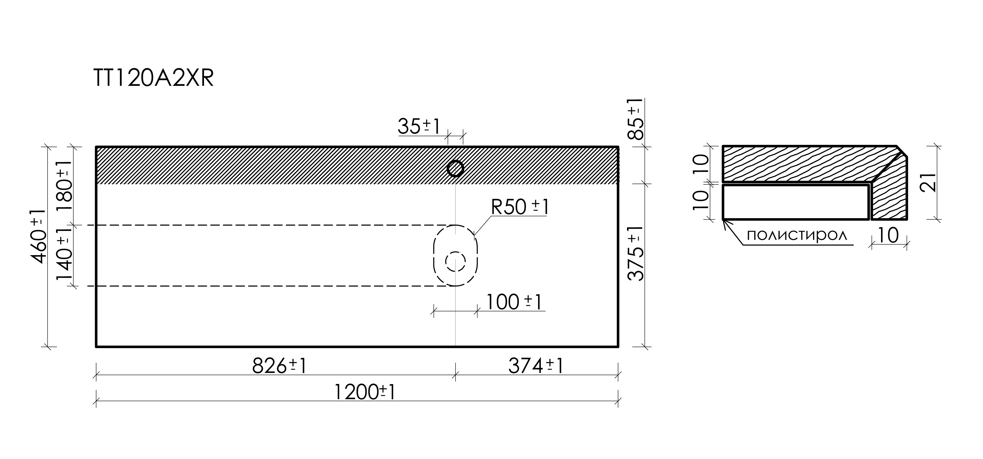 Нижний слой состоит из усиленного полистирола, благодаря этому столешница имеет механическую прочность и повышенную звукоизоляцию.