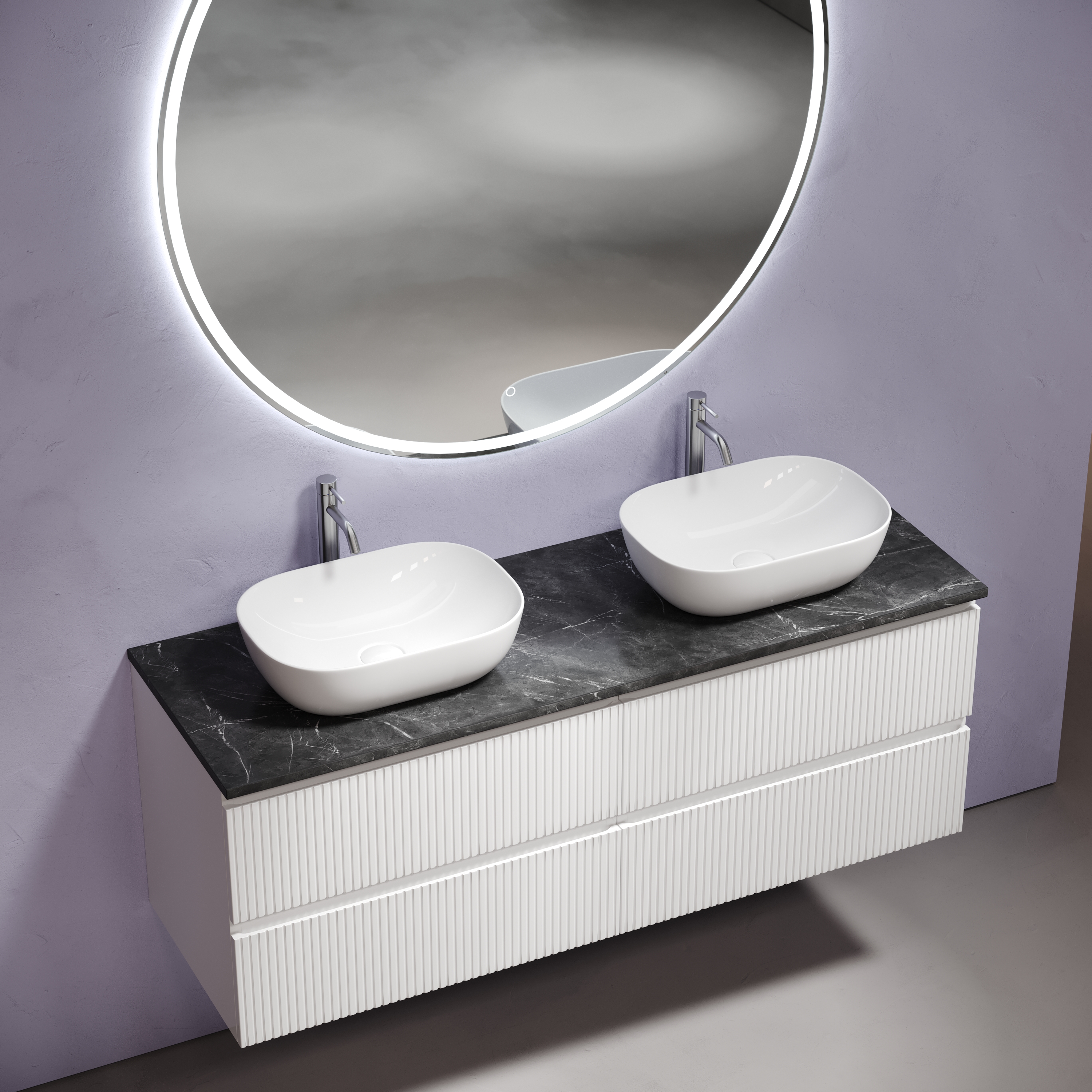 Возможность комплектации с двумя подвесными тумбами в размере 700 мм из коллекций: FOLK, VERY, SNOB R, SNOB T, MARMI 1.0, MARMI 2.0.