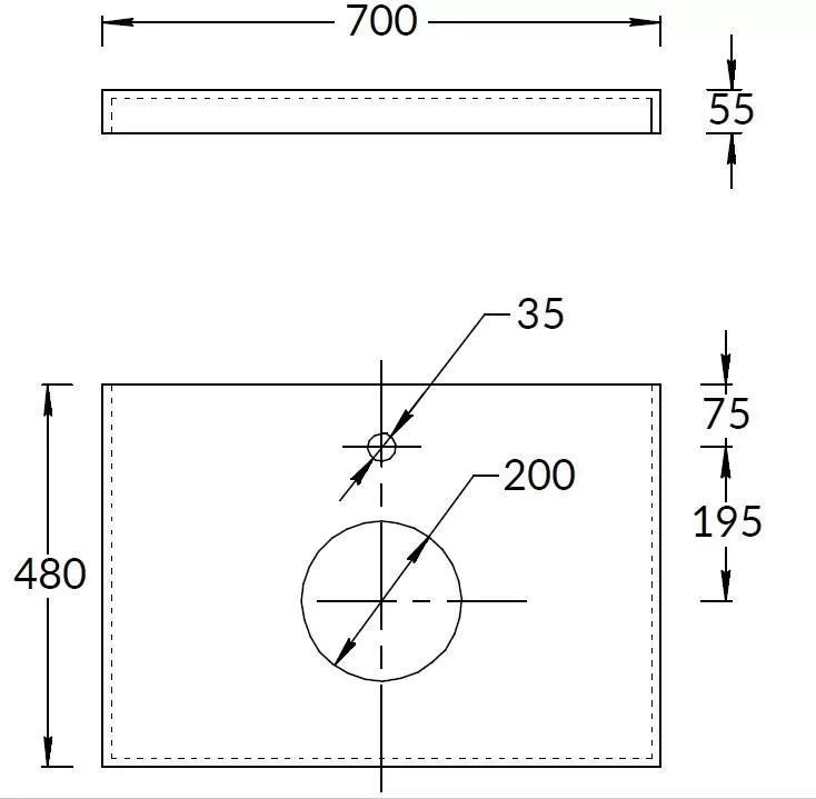 Столешница из керамического гранита «Про Чементо» с отверстием под смеситель. Предназначена для использования раковинами CANALETTO, а также с тумбами MODULA. Отверстия для раковины и смесителя располагаются в центре. Смеситель устанавливается в столешницу (используйте смесители с подходящим типом установки).