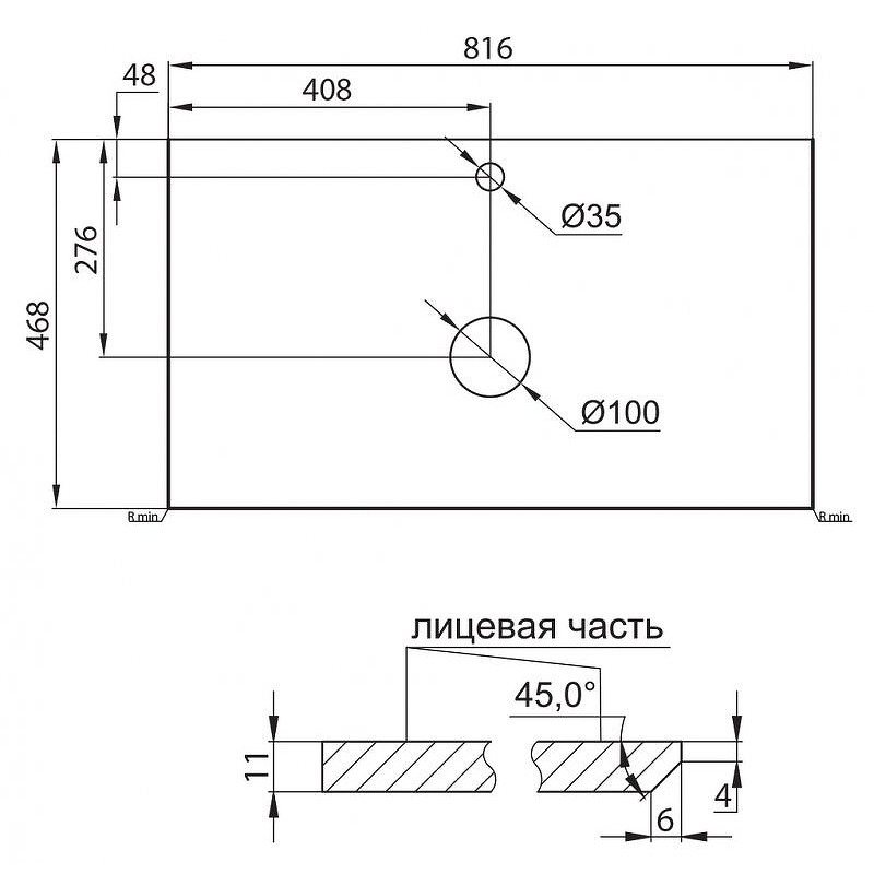 - Габариты (ШxВxГ): 81,6x11x46,8 см.