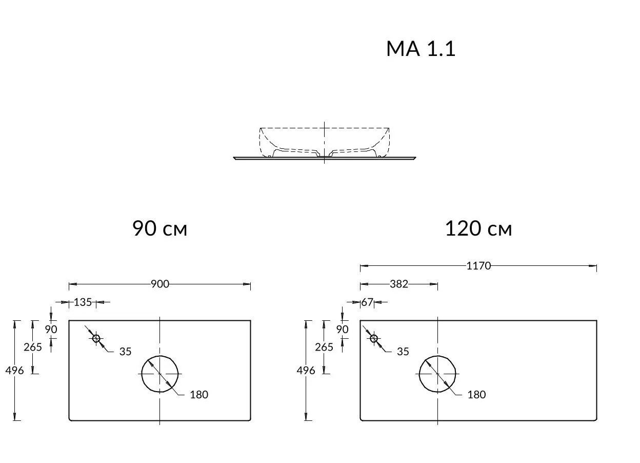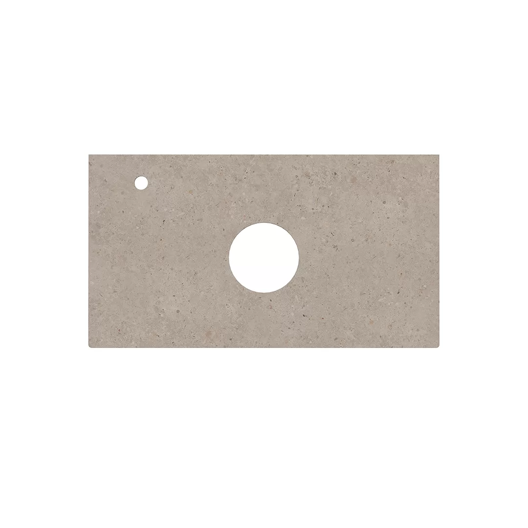 Столешница из керамического гранита «Риккарди» предназначена для использования с тумбами и накладными раковинами серии MAGICA. Отверстие для раковины располагается в центре. Смеситель устанавливается на столешницу (используйте смесители с подходящим типом установки).