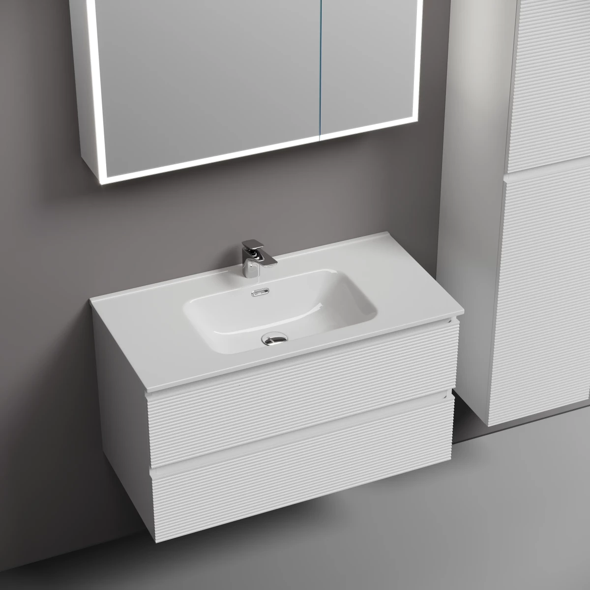 - Тумба под раковину Sancos Folk 90 см, подвесная, белый