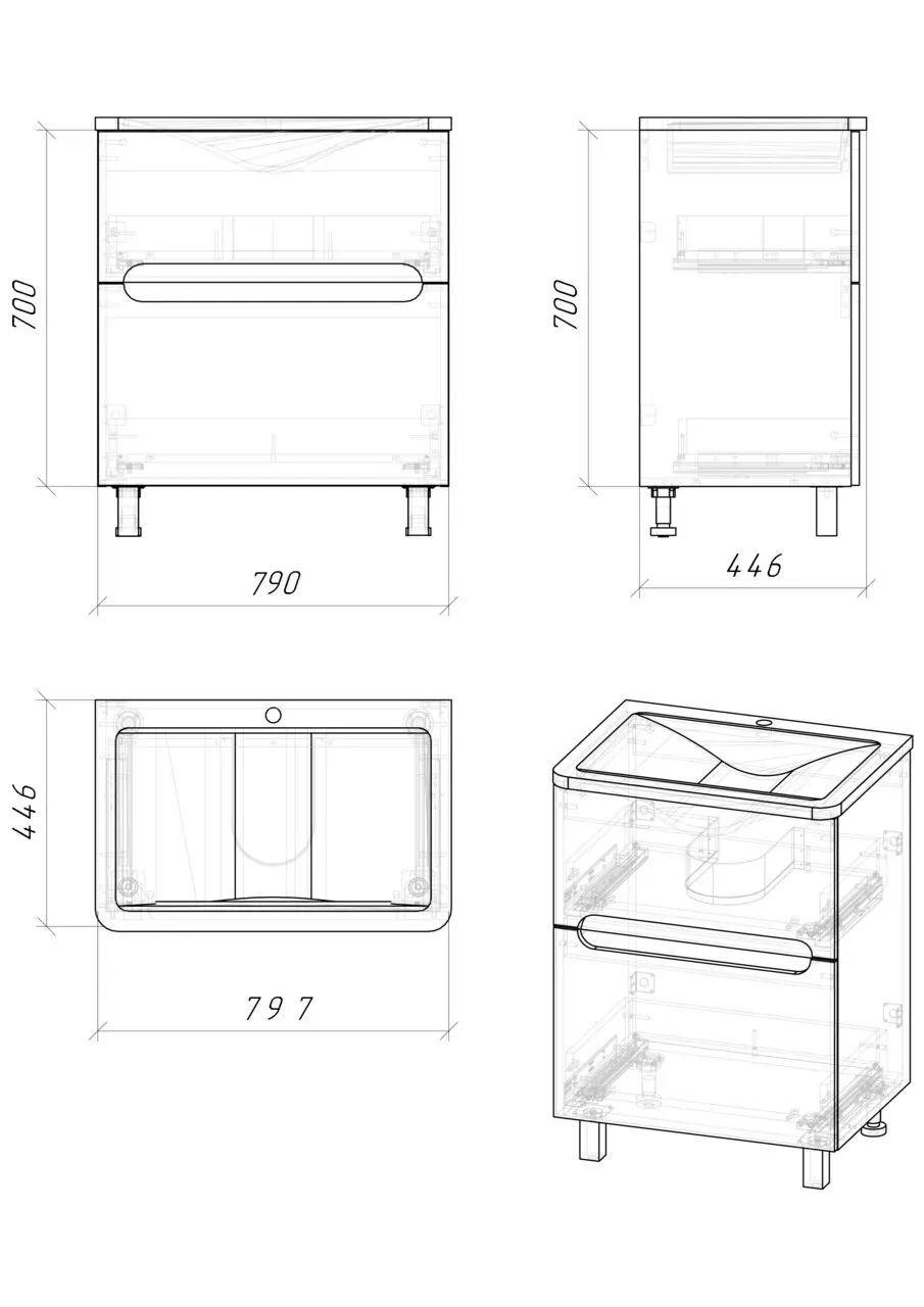 Ручки и подвесы для крепления тумбы - в комплекте.