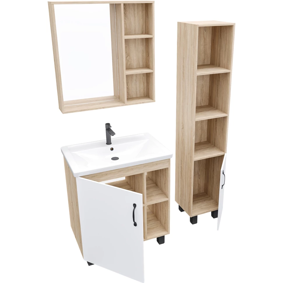 Корпус тумбы выполнен из ЛДСП, фасад - из МДФ в матовой пленке, устойчивый к перепадам температур и высокой влажности.