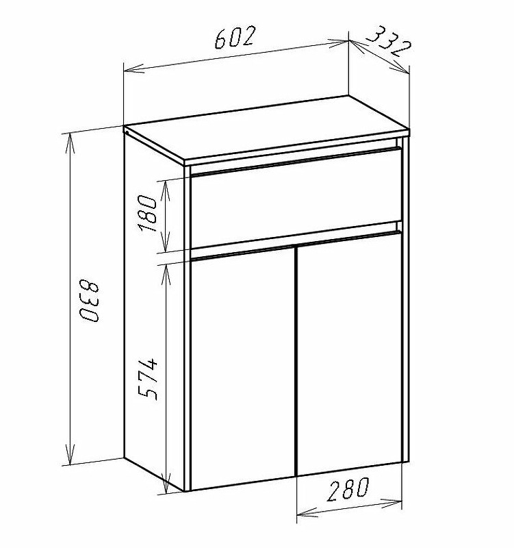 ЛДСП | Оснащение мебели | 1 ящик, Доводчик, Полки, С дверками |