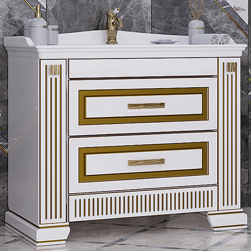 Комплект в размере 100 см предлагается с двумя выдвижными ящиками и двумя дверцами.