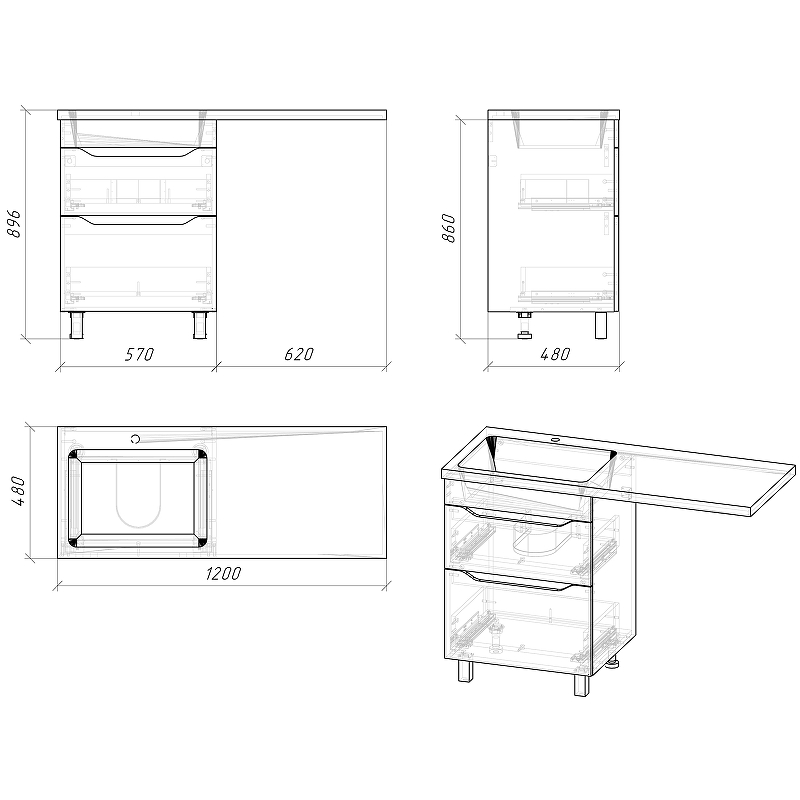 Тумба оснащена двумя ящиками, которые оборудованы направляющими скрытого монтажа с системой плавного закрывания. Они предназначены для удобного хранения различных предметов, обеспечивая пространство и порядок в вашей ванной комнате.