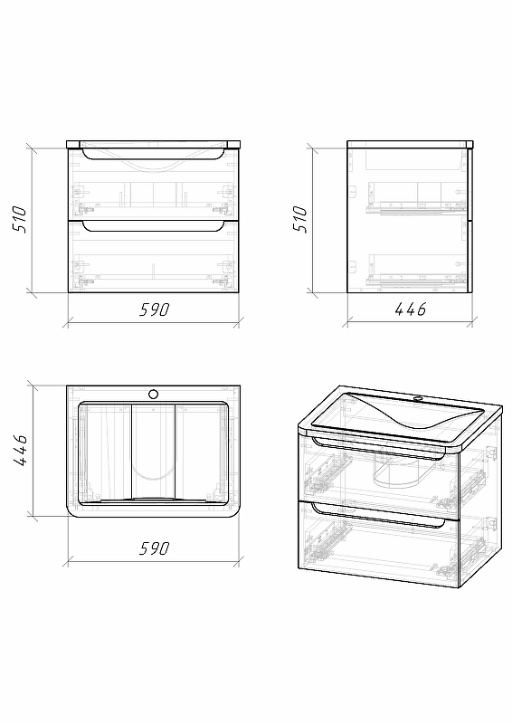 Ручки и подвесы для крепления тумбы - в комплекте.