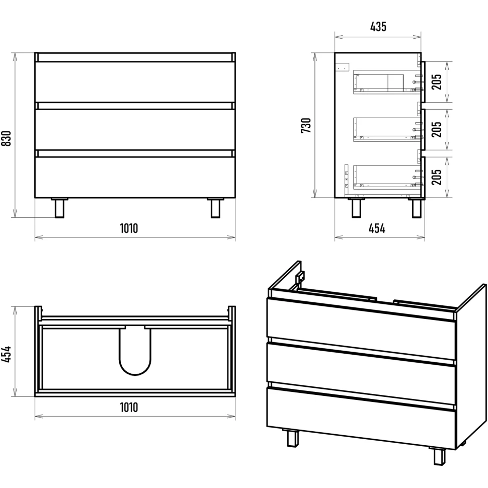 - Размер мебели, мм (ш/г/в): 1010x454x730