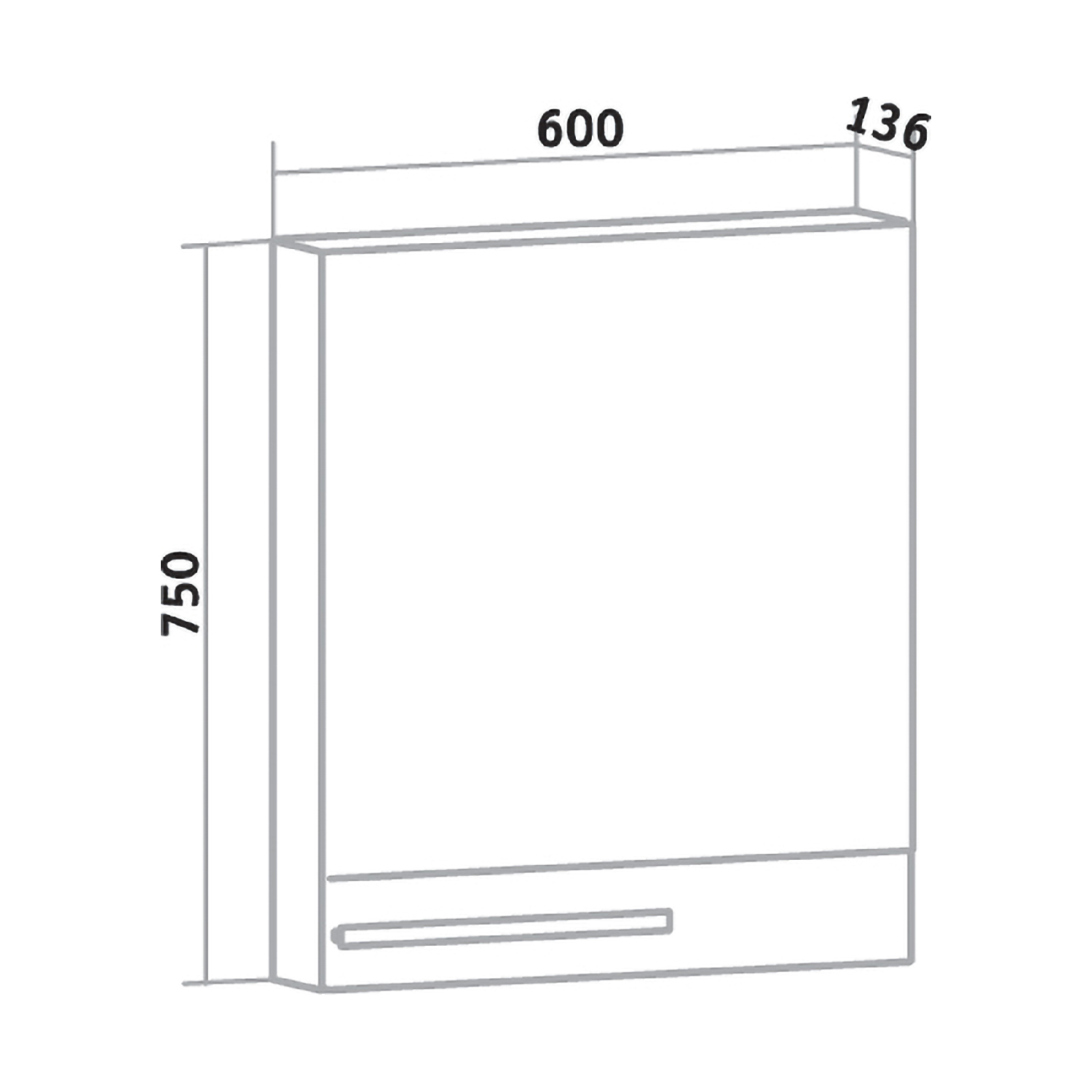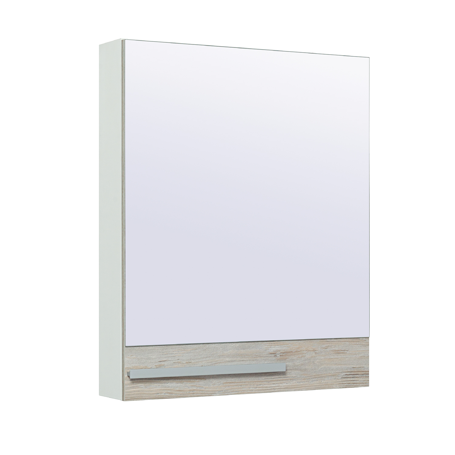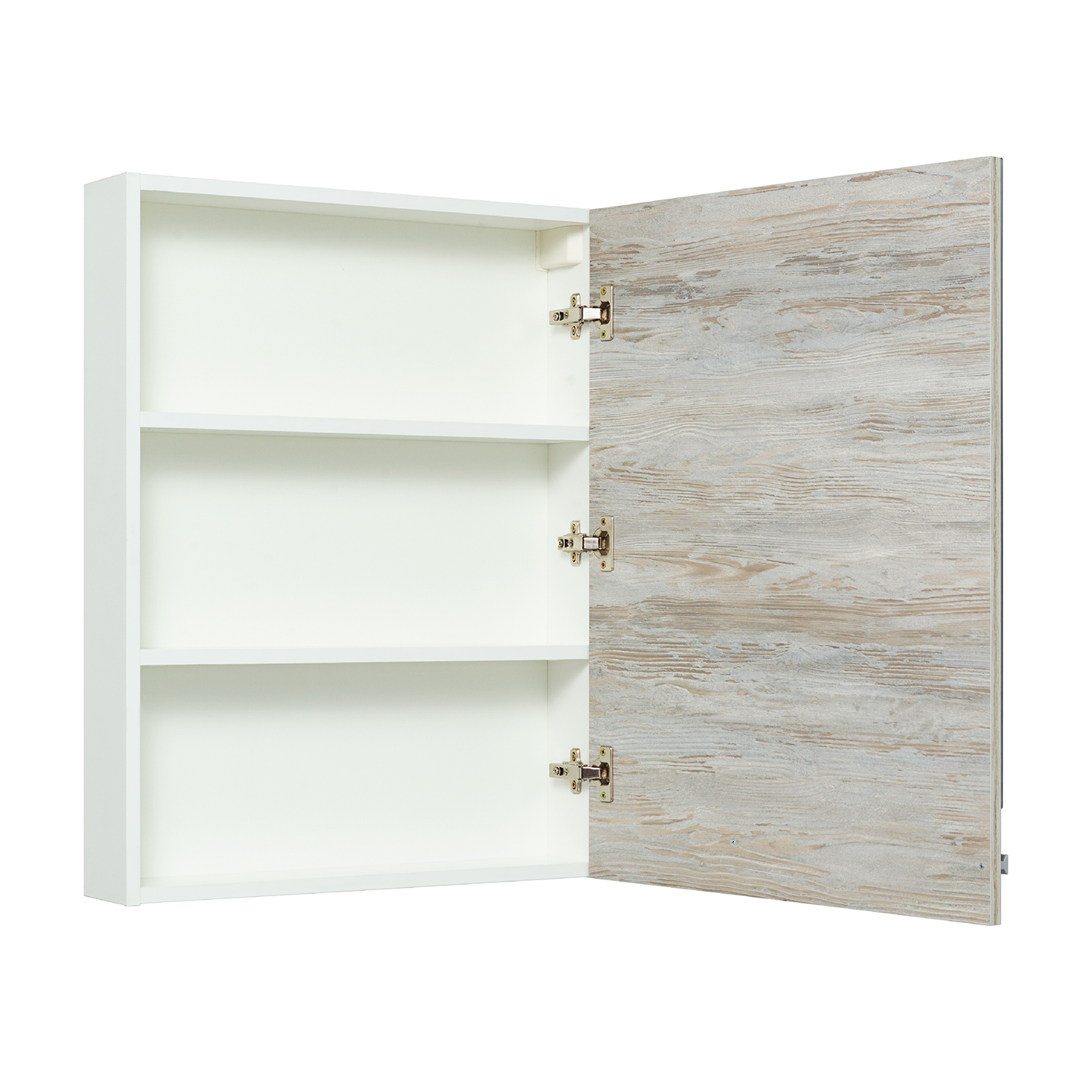 Зеркальный шкаф без подсветки с одной распашной дверкой, за которой две внутренние полки. Петли со встроенным доводчиком. Выпускается только в правом исполнении.