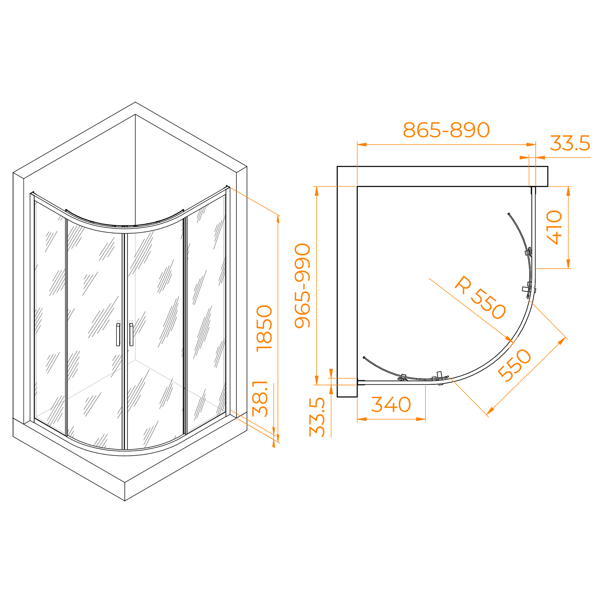 - Размеры с диапазоном регулировок: (865-890)-(965-990)