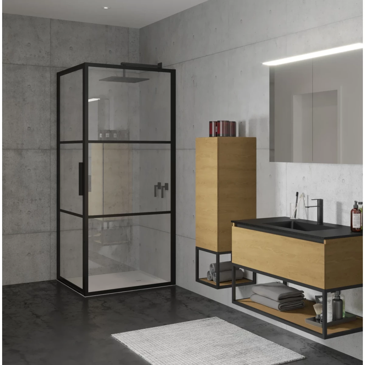 1) Душевой уголок Riho Grid GB201 90x90 см черный матовый/прозрачное стекло