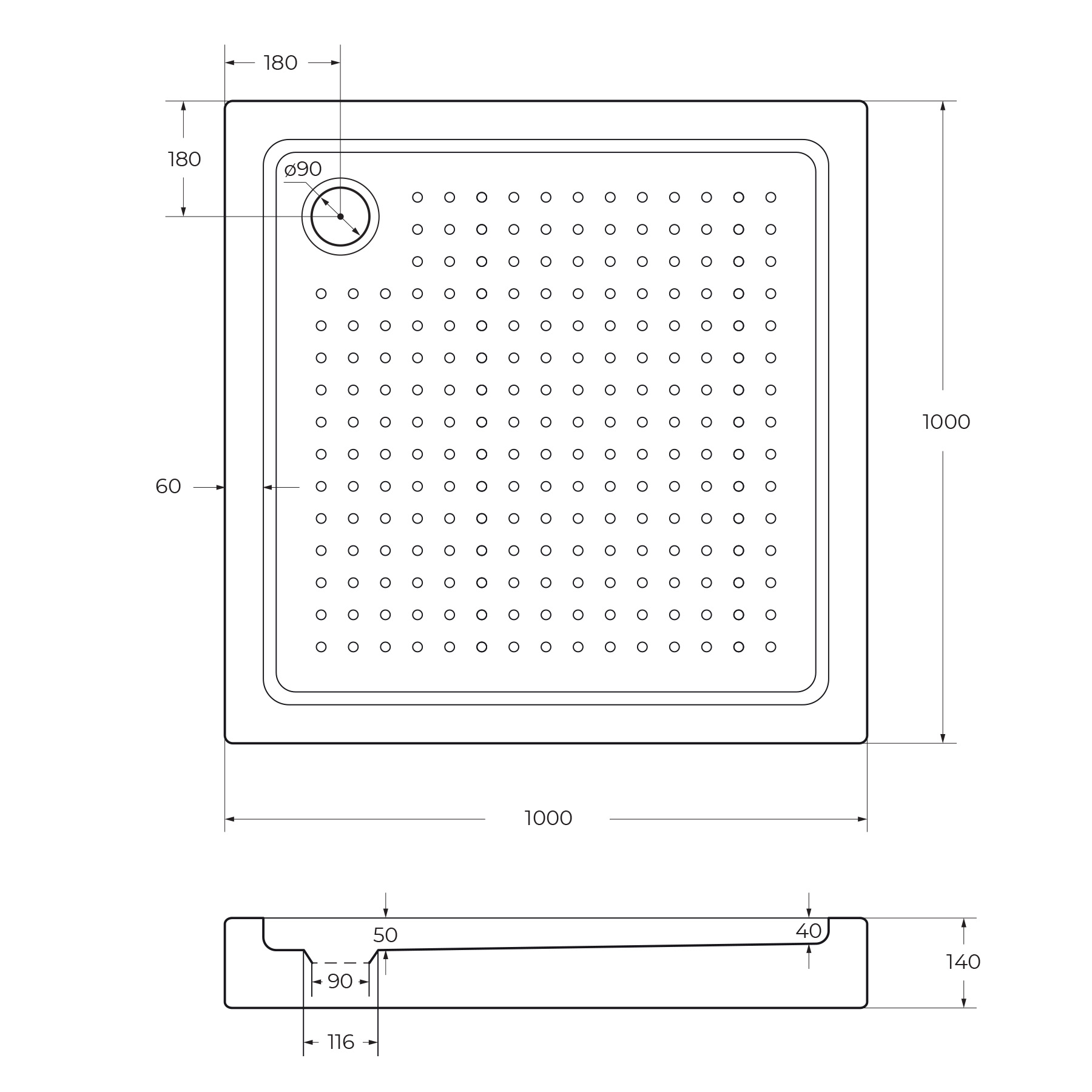 - Дополнительная информация: поддон оснащен антискользящим массажным покрытием