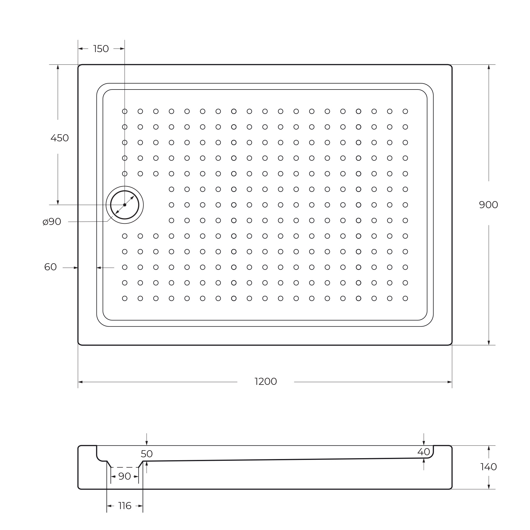 - Дополнительная информация: поддон оснащен антискользящим массажным покрытием, в комплект входит сифон с декоративной крышкой Хром, обеспечивающий слив до 25 л. воды в минуту(кроме поддона TRAY-A-AH-120/90-15-W0, к нему сифон приобретается отдельно)
