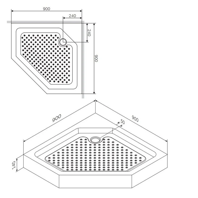 - Пятиугольный поддон Gem - универсальное решение за счет небольшого веса и простой установки. Ударопрочный устойчивый к сколам царапинам материал гарантирует долгую службу. Специальная форма позволяет занимать минимум пространства. Гладкая поверхность легко очищается от любых загрязнений. Поддон совместим с душевым ограждением - артикул W90G-405-090MT. Приобретается отдельно.