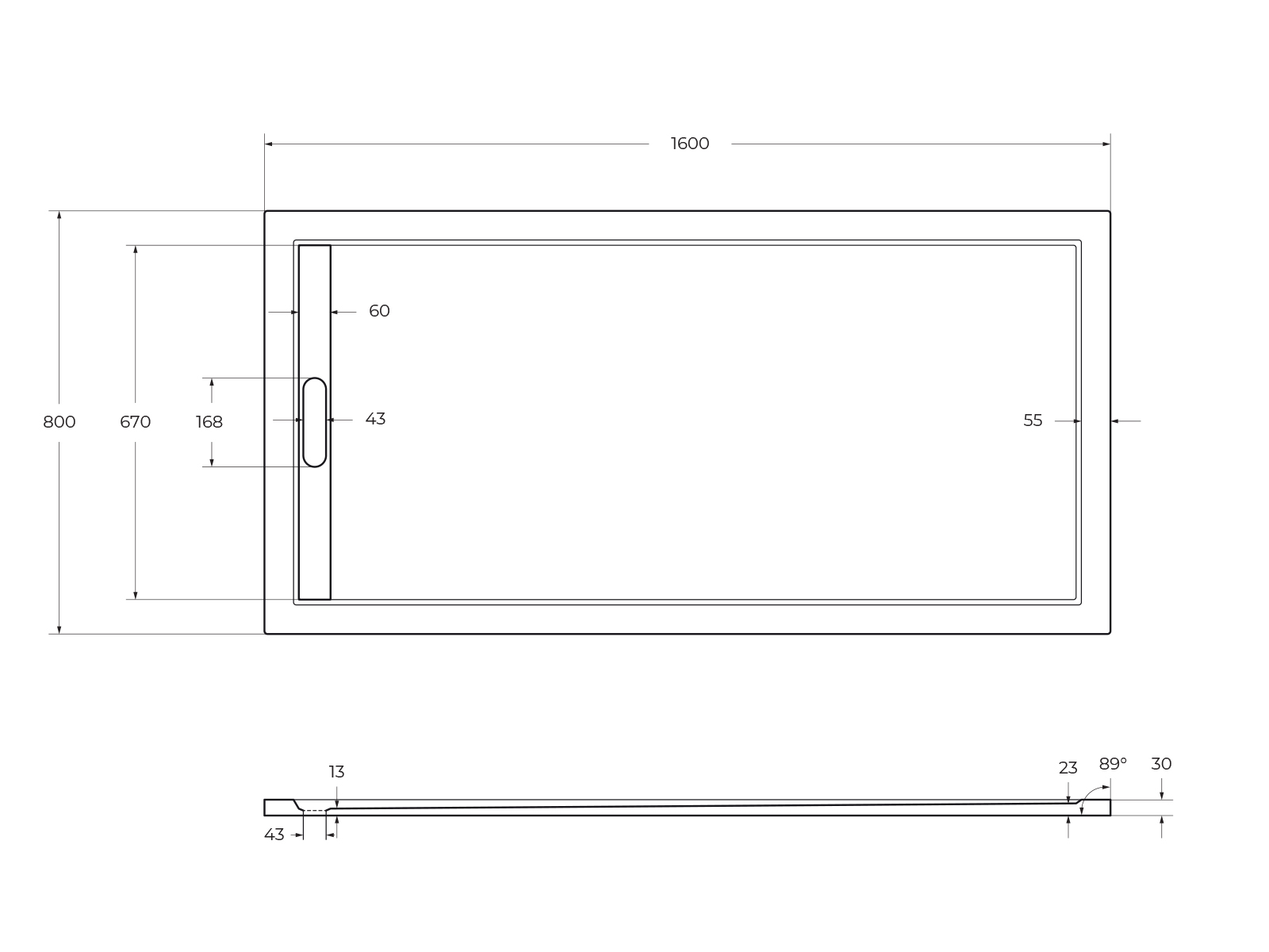 - Цвет декоративной накладки поддона: хром
