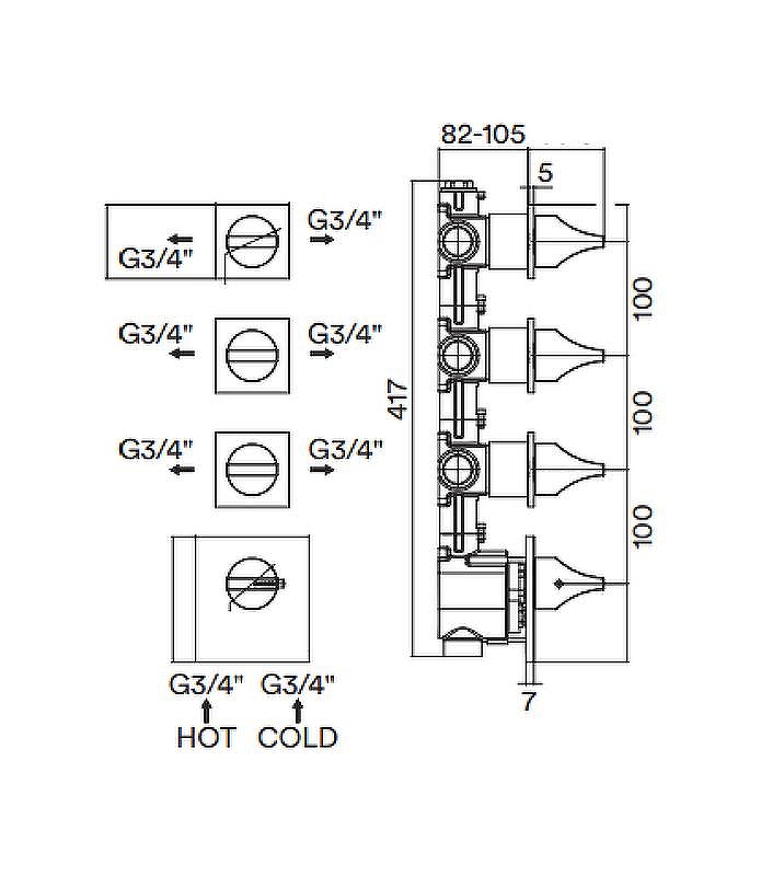 - Внутренняя (скрытая) часть термостатического смесителя с девиатором Bossini Oki/Cube на 4 потребителя Z030271000 с высокой пропускной способностью с встроенным креплением (монтажем) на стену, внутрення часть. Выполнен с возможностью вертикальной или горизонтальной установки.