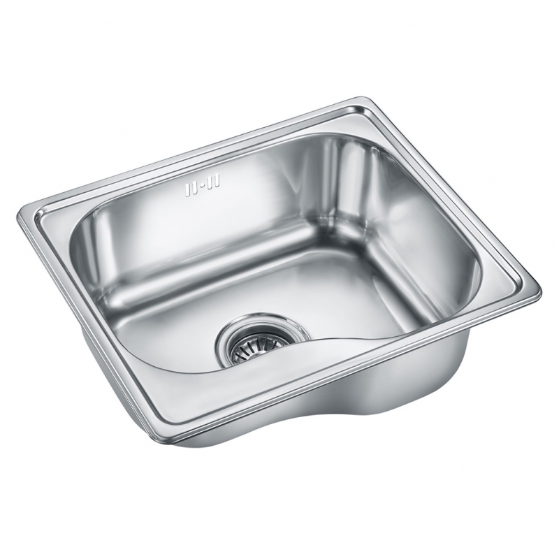 Компактная мойка из нержавеющей стали AISI 201. Без крыла и отверстия под смеситель. На дне установлена резиновая шумопоглощающая накладка. Толщина стали 0.6 мм. Подходит для маленьких кухонь.