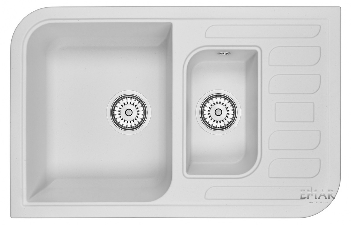 Кухонные мойки EMAR QUARTZ на 78% состоят из измельченного кварца различных фракций и 22% связующих полиэфирных смол.