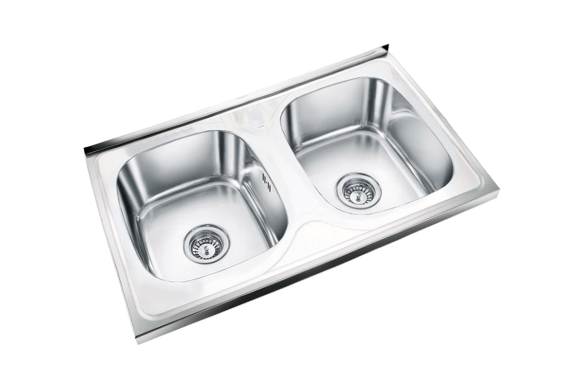 Классическая накладная мойка c двумя чашами из нержавеющей стали AISI 201 с глянцевой поверхностью. Данная модель при монтаже накладывается на отдельностоящую тумбу. На дне установлена резиновая шумопоглощающая накладка.