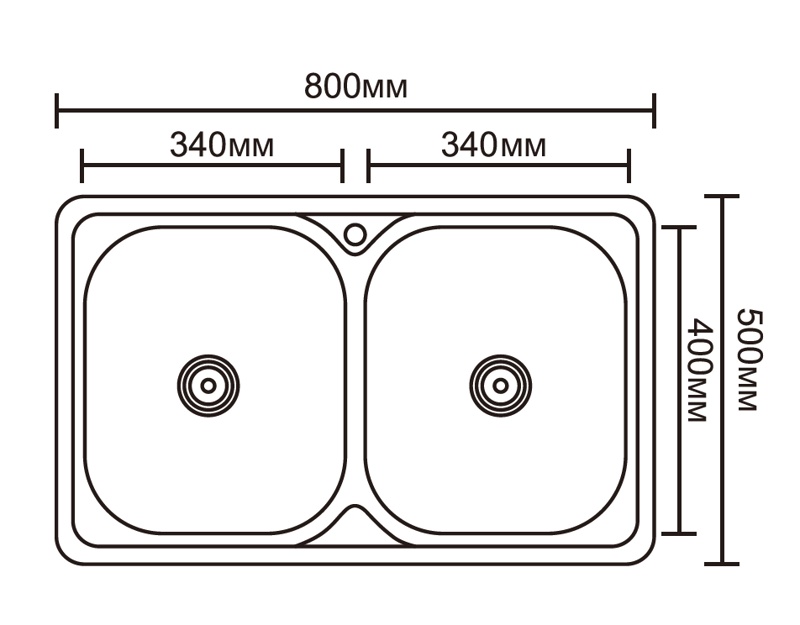 Размеры мойки: 800 х 500 мм Размеры чаш: 300 х 400 х 180 мм и 300 х 400 х 180 мм Толщина стали: 0,8 мм Монтажная тумба: 800 мм Способ монтажа: накладной Размер сливного отверстия: 90 мм Размер упаковки: 900 х 640 х 220мм Вес брутто: 6.6 кг Гарантия на мойку 5 лет.