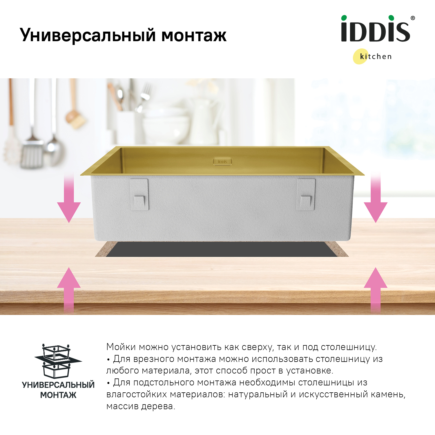 Встраиваемая сверху | Материал мойки | Нержавеющая сталь |