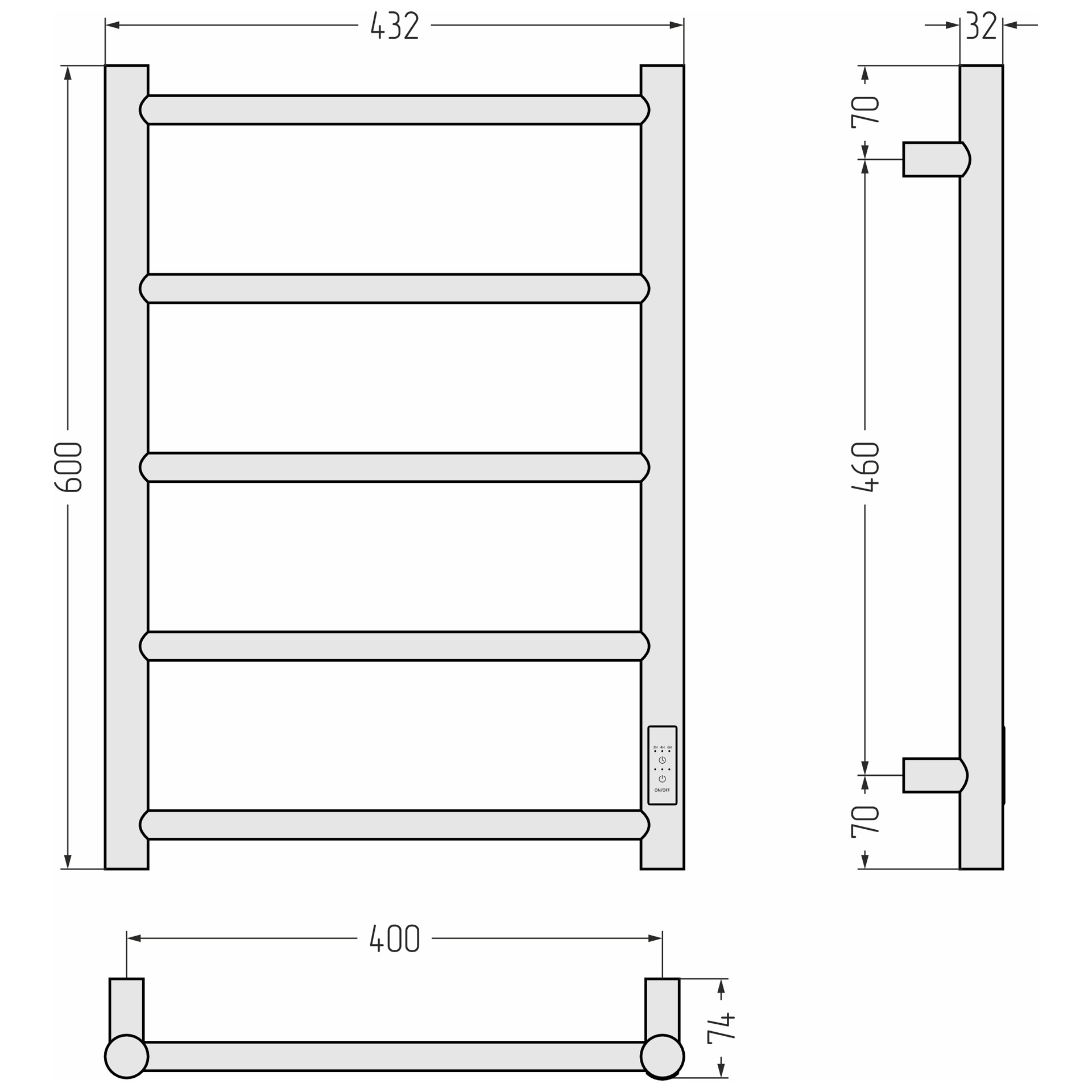- Внешние габариты - ширина (мм) 432