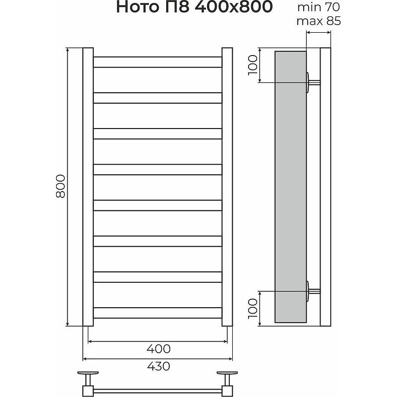 - Модель «Ното» ‒ стильное и ультрамодное решение для вашей ванной в современном стиле хай-тек, который сложно представить без высокотехнологичных форм и строгих линий. За счет прямоугольных перекладин она обладает повышенной теплоотдачей и способствует созданию приятного микроклимата в помещении.