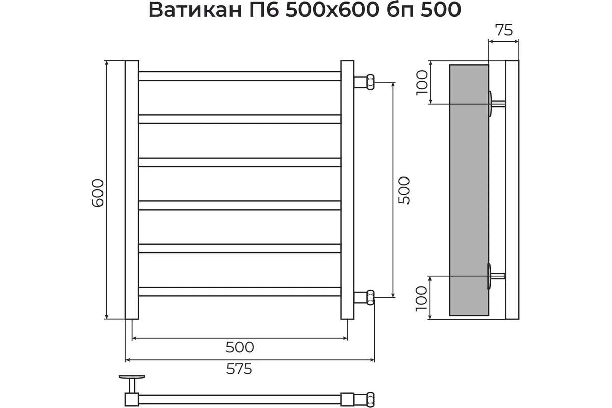 - Водяной полотенцесушитель Terminus Ватикан П6 500x600 с боковым подключением 500 4670078563361 служит не только для обогрева ванной комнаты, но и понижает уровень влажности в помещении, благодаря чему подавляется размножение плесневого грибка.