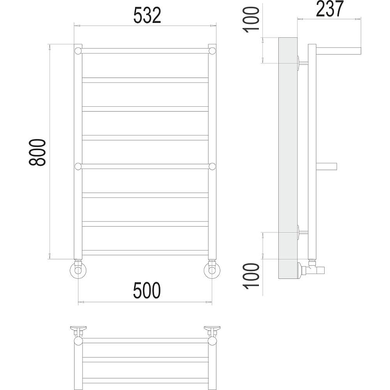 - Водяной полотенцесушитель Terminus Аврора с двумя полками П8 500x800 4670078563309 служит не только для обогрева ванной комнаты, но и понижает уровень влажности в помещении, благодаря чему подавляется размножение плесневого грибка.