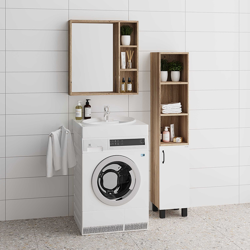 - Монтаж: крепится на кронштейны над стиральной машиной.