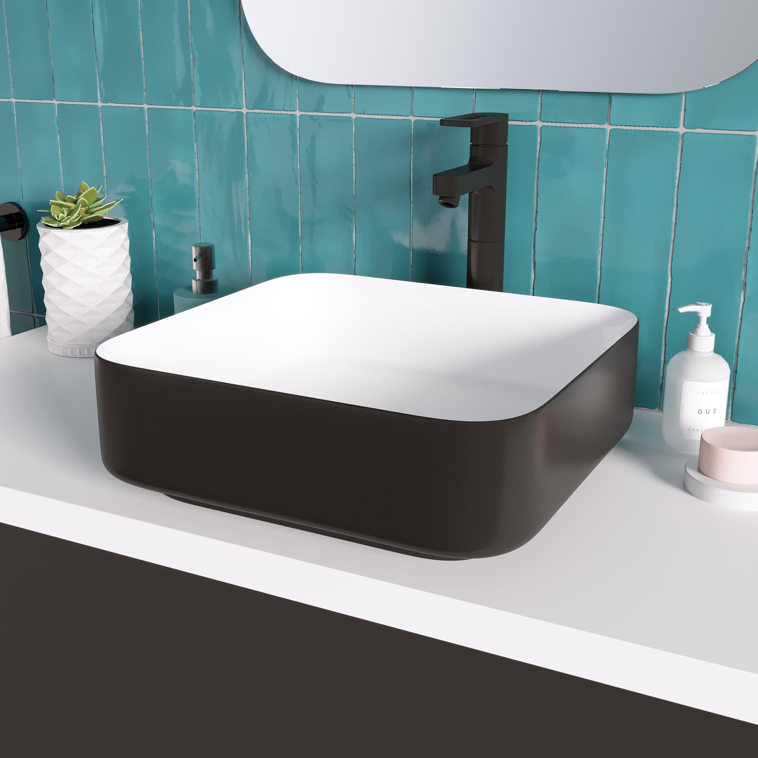 Раковина Grossman Color GR-4042BW выполнена в стильном черном цвете, который легко впишется в любой современный интерьер ванной комнаты. Квадратная форма и компактные размеры (38,5х38,5 см) позволяют экономить пространство, а глубина в 38,5 см обеспечивает удобство использования.
