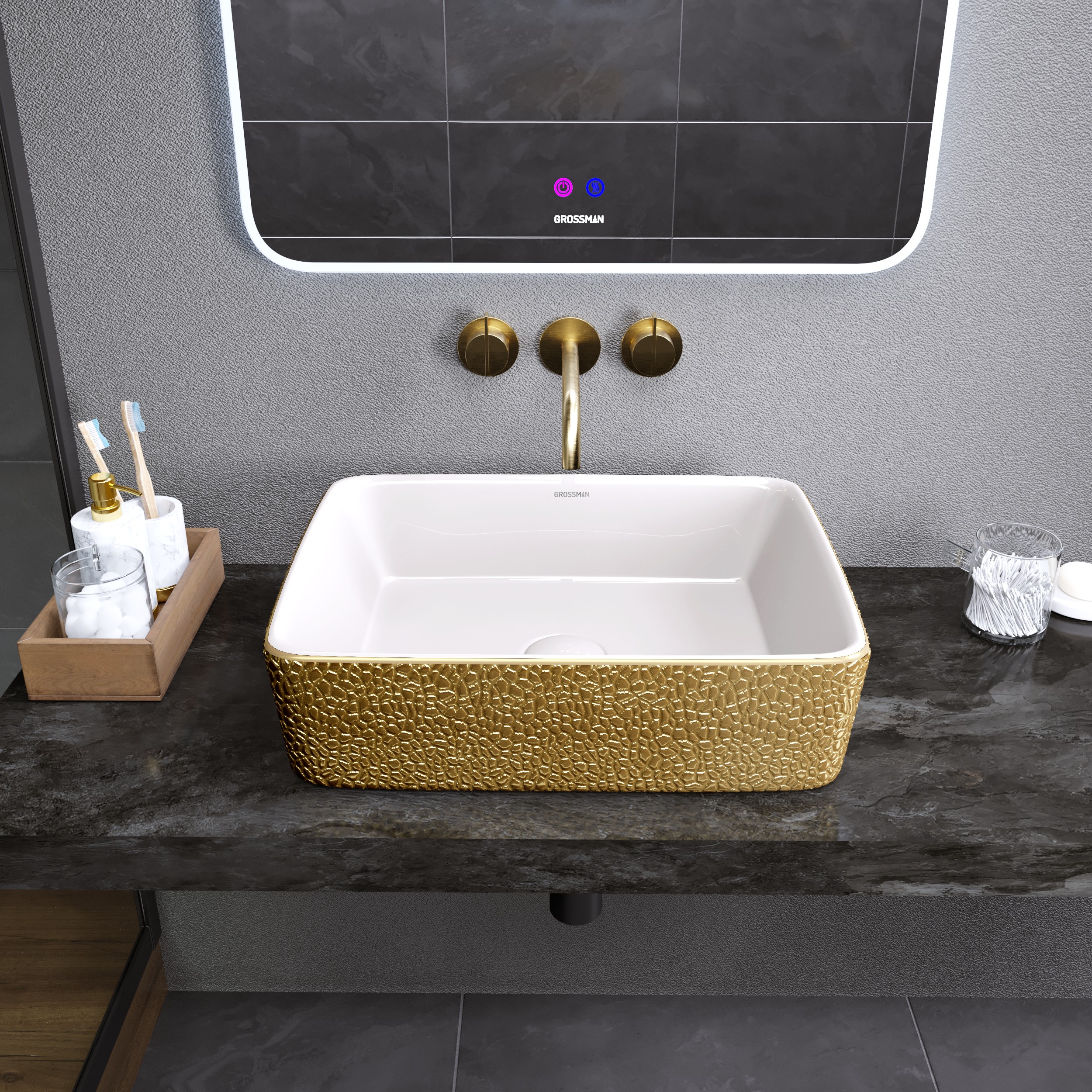 Раковина Grossman Color GR-3016GWL выполнена в золотистом цвете, что придает ей роскошный и элегантный вид.