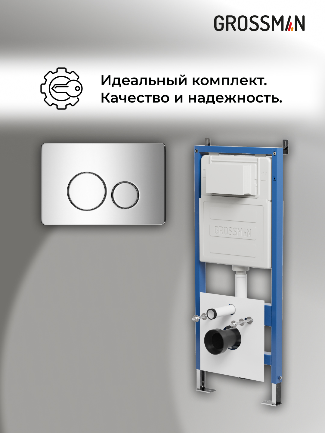 Инсталляция для подвесного унитаза 4 в 1 Grossman Style 97.05.10M хром глянцевый - это современное и функциональное решение для обустройства ванной комнаты.
