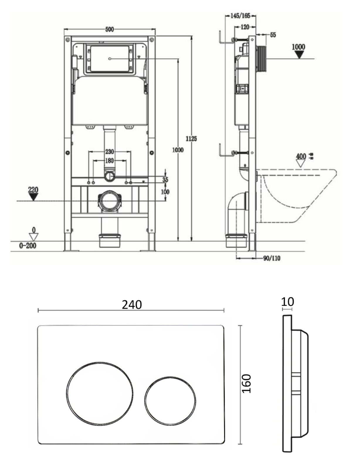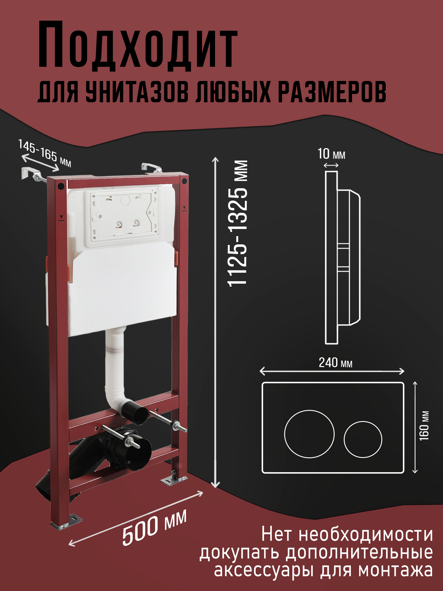 Инсталляция для подвесного унитаза от немецкого бренда Agger. Поможет гармонично интегрировать подвесной унитаз в интерьер Вашей ванной комнаты. Обеспечит минимальный уровень шума и максимальный уровень комфорта при эксплуатации. В комплект входят все необходимые крепления. Максимально допустимая нагрузка 400 кг. Объем смыва 3 и 6 литра позволяет экономить воду, снижая ее расход. Ширина рамы - 500 мм, глубина - 145/165 мм, высота - 1125/1325 мм. Межосевое расстояние под крепежные шпильки унитаза 180/230 мм. Материал - сталь. Кнопка смыва приобретается дополнительно.