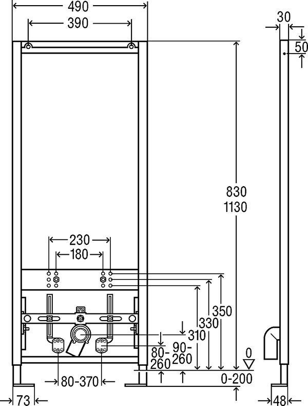 - --- стальная рама с порошковым напылением, регулируемый по высоте и звукоизолированный крепеж для водорозеток Viega, регулируемое по высоте сливное колено DN40/DN50, резиновый ниппель DN40/30, крепежный материал для модуля (к полу) и керамики, саморезы для фиксации на металлических каркасных конструкциях, отверстие Ø 11 мм для крепления на деревянном каркасе, выдвижные опоры