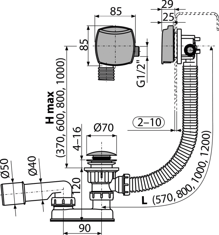- Длина сифона для ванны 57 см.