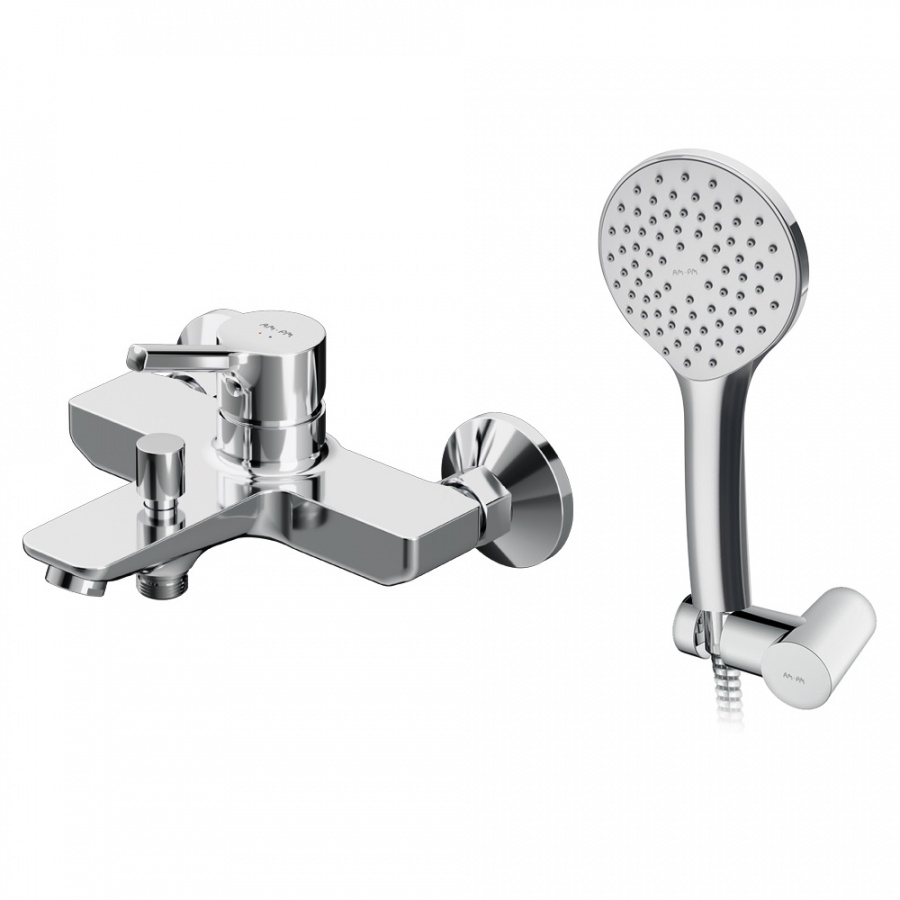 В комплекте душевой набор: стильный ручной душ 120 мм 1 режим настенный держатель с регулировкой угла наклона душевой шланг с защитой от скручивания.