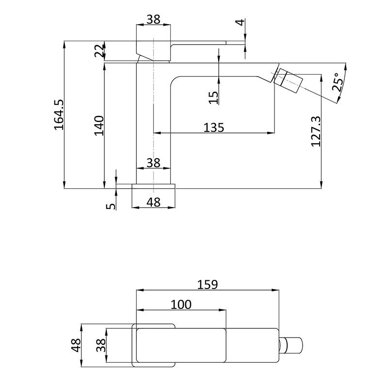 Для биде | Расположение рычага | Верхнее |