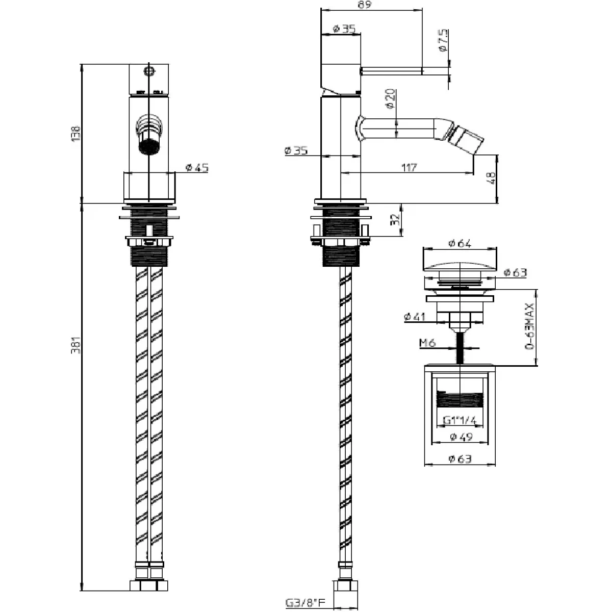 - Донный клапан: G 1 1/4.