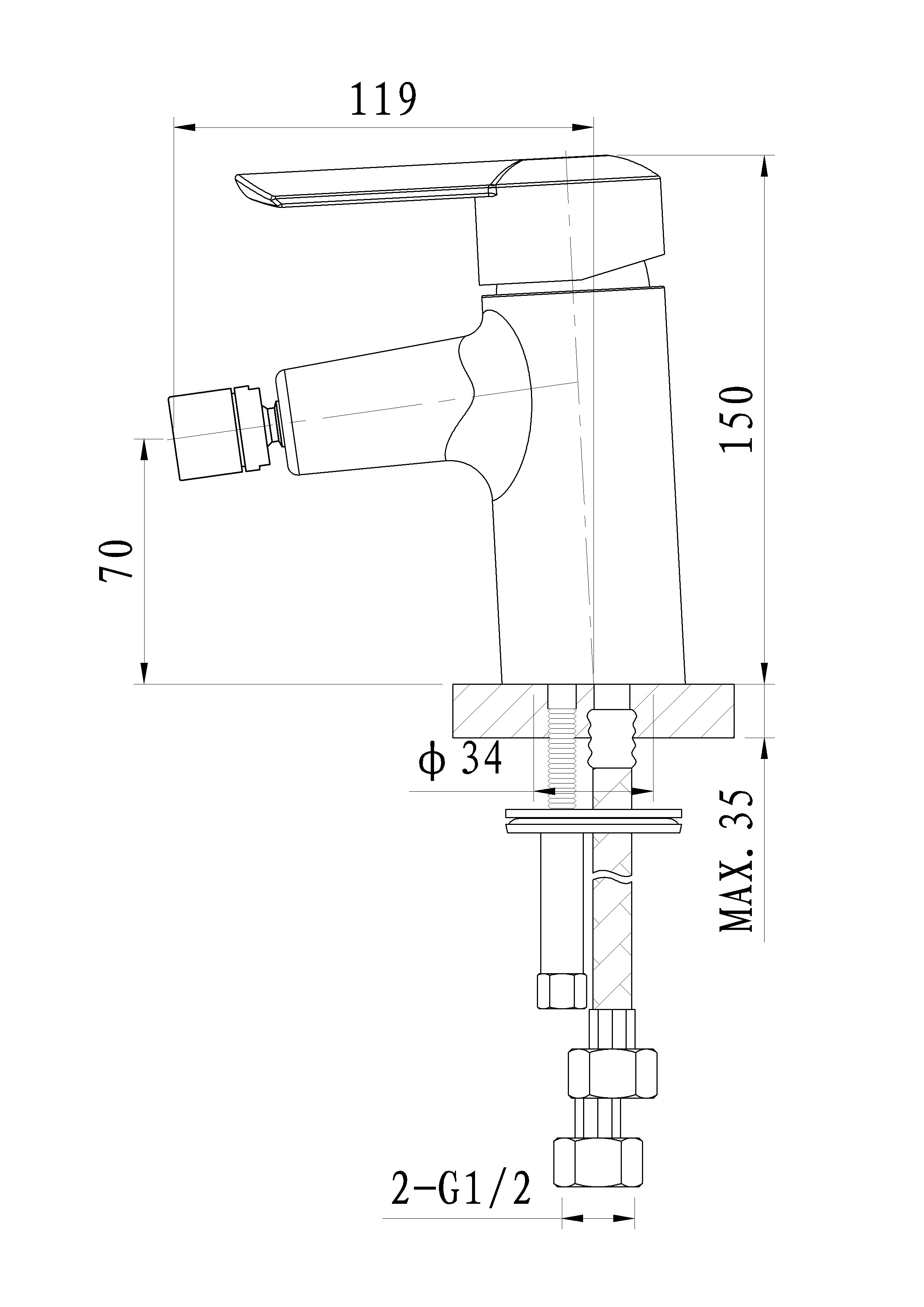 Вертикальный, На биде |
