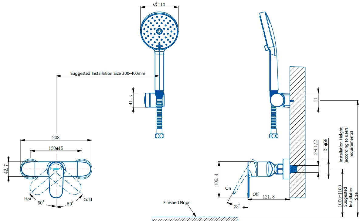 Горизонтальный, Настенный | Материал смесителя | Латунь |