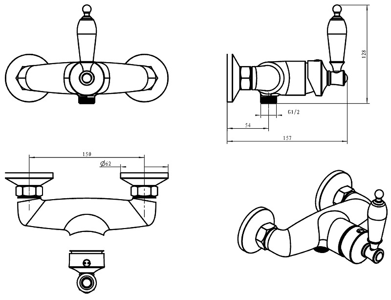 Для душа Расположение рычага Центральное