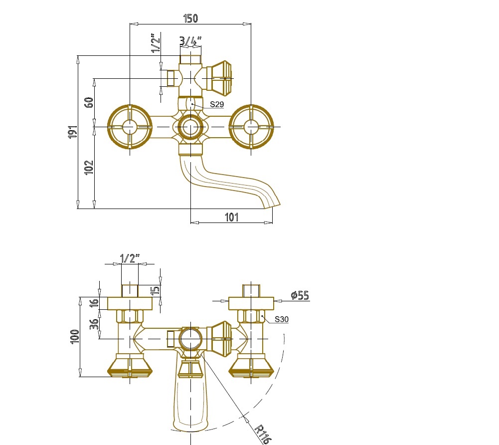 Для ванны, Универсальный | Материал смесителя | Латунь |