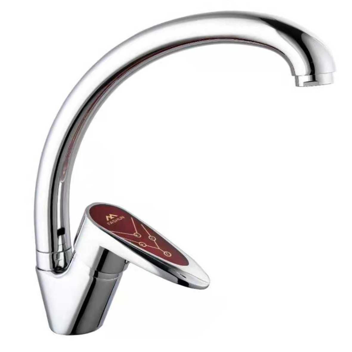 A4113 смеситель для кухни, H=235 мм хром, красный латунь картридж D=35 мм излив H=180 мм гибкая подводка: 450 мм в комплекте крепёж: двойная шпилька